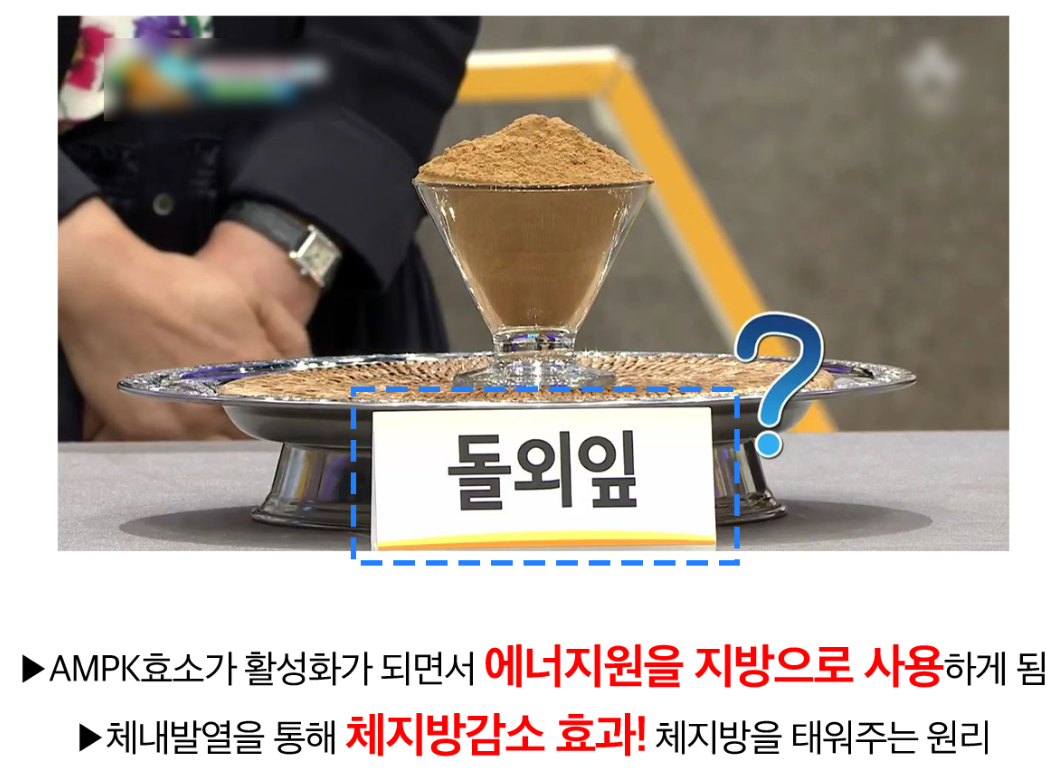 돌외잎에는 AMPK라는 효소가 존재해 지방의 축적 및 합성을 억제하는 효과를 만듭니다. 이 AMPK는 당과 지방 대사에 중요한 역할을 단백질 효소 중 하나로, 활성화될 시 몸속 축적되어 있는 내장지방과 체지방을 효과적으로 연소시키는 작용을 하는 것으로 알려졌습니다. 그래서 다이어트를 하는 많은 사람들이 요즘은 굶지 않고 돌외잎추출물을 먹으면서 다이어트를 하기 때문에 요요현상과 같은 부작용이 거의 없습니다.